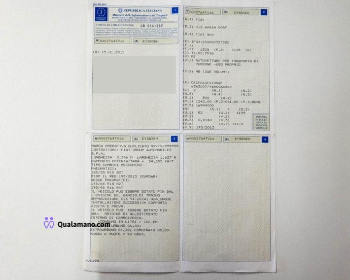 Autovettura Fiat 500 (autovettura per trasporto di persone), targata EY583EH, data di...