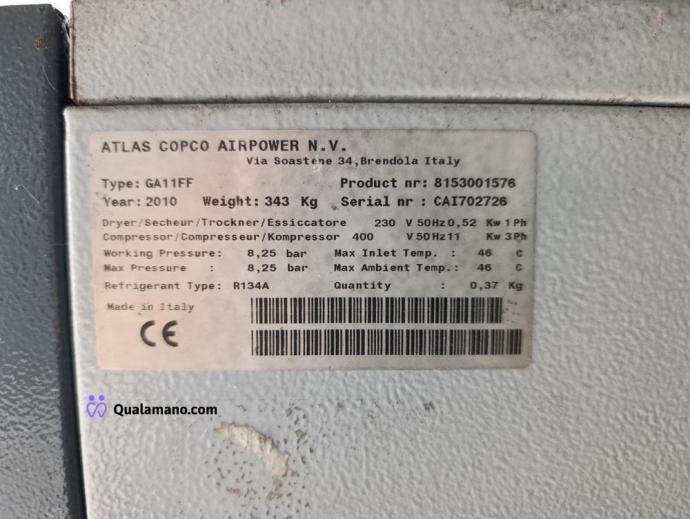 Compressore Atlas Copco, Essiccatore Ceccato, Filtro, Serbatoio Aria Compressa Sicc Tech