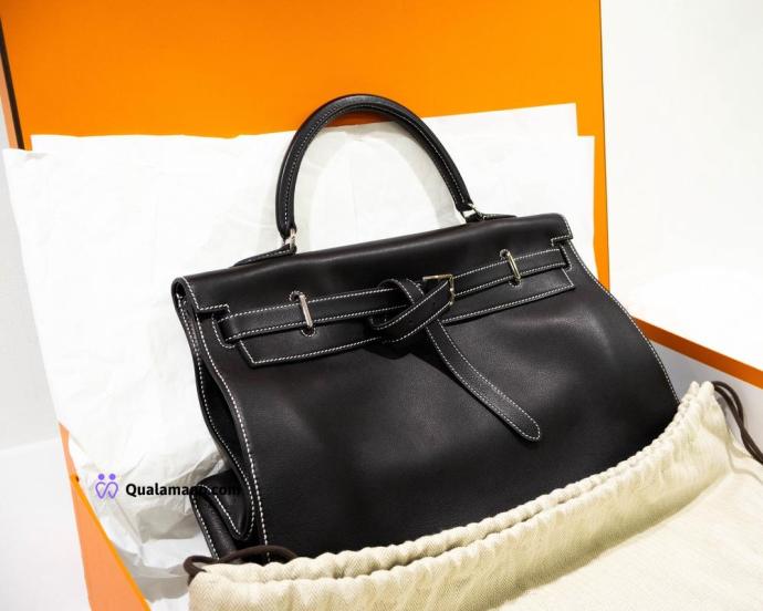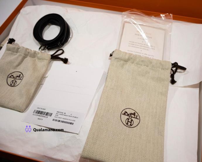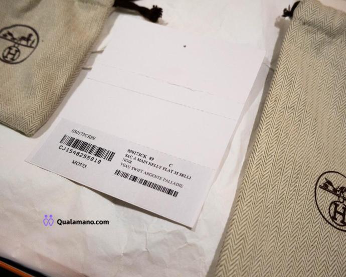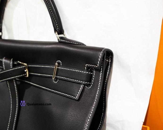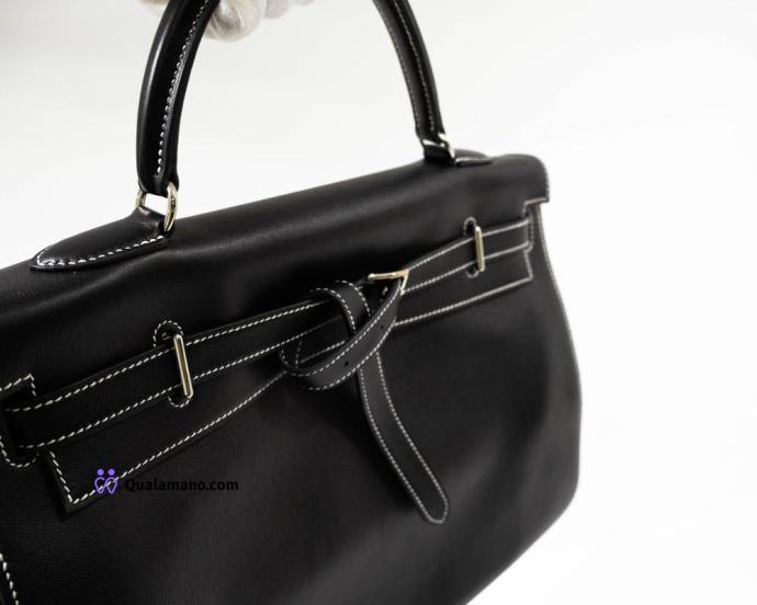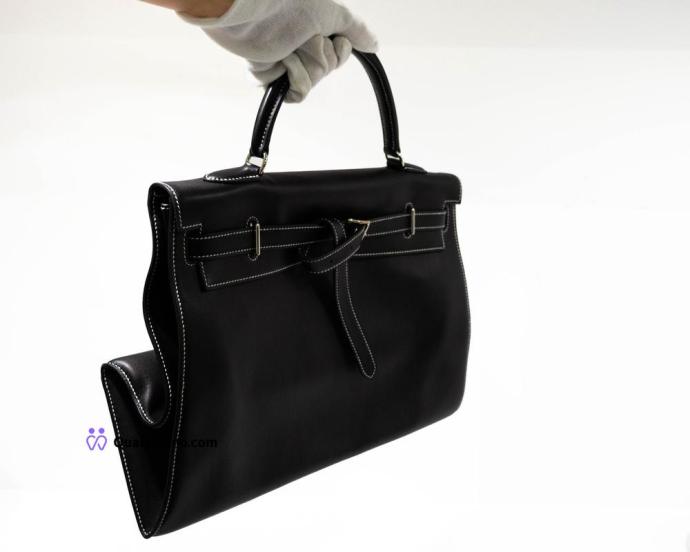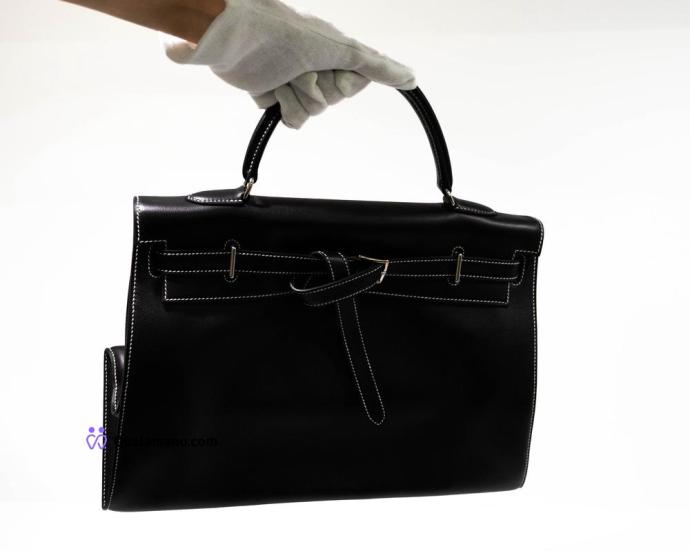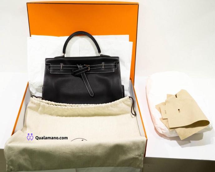 Hermès Kelly - Borsa modello Flat 35 Swift Noir con cuciture bianche, hardware palladiato – era J.P.G. (Jean-Paul Gaultier) – full set