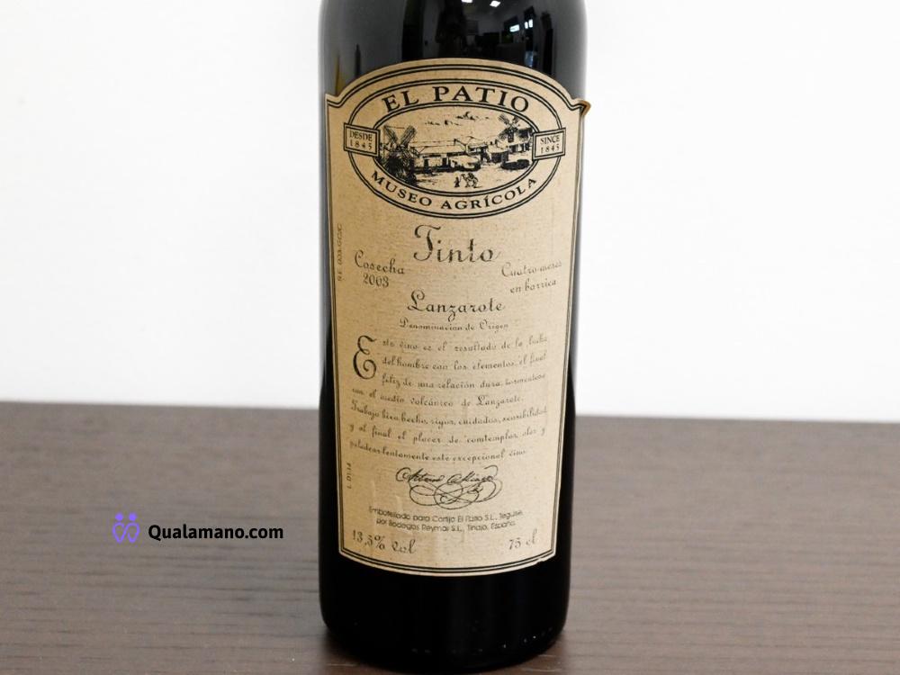 N. 1 Bottiglia di vino rosso prodotto da Museo Agrícola El Patio di Tiagua, sull’isola di Lanzarote, annata 2003. Bottiglia numerata n. 2397176. 75cl, vol 13,5%.