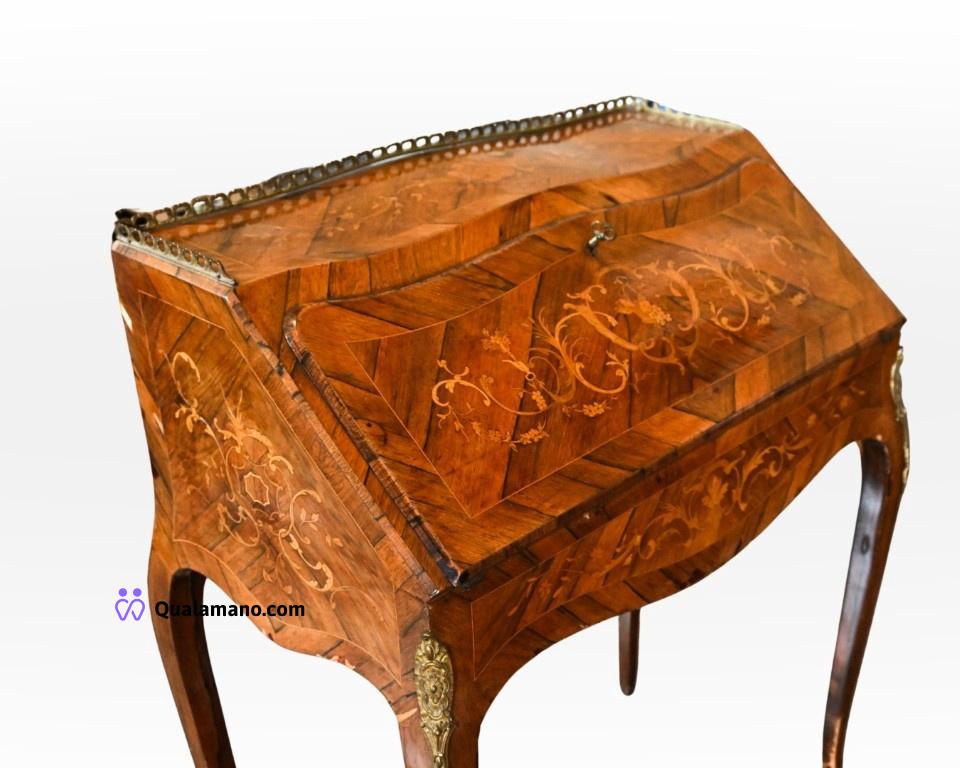 N. 1 Scrittoio a ribalta intarsiato, in legno, con raffinati motivi floreali. Dimensioni 100x75x43 cm