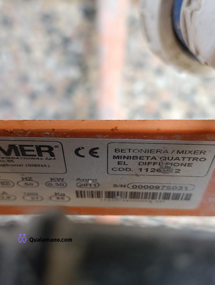Betoniera IMER MINIBETA QUATTRO, anno 2011, s.n. 0000975031, litri 100;