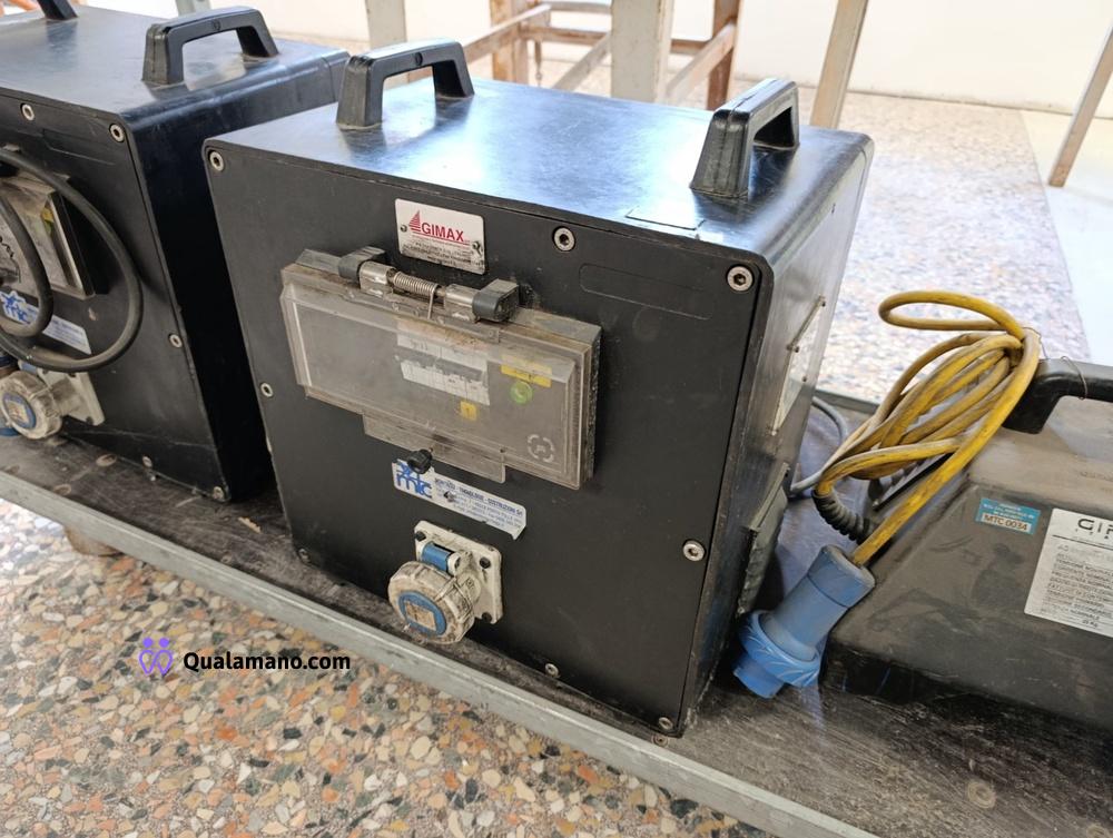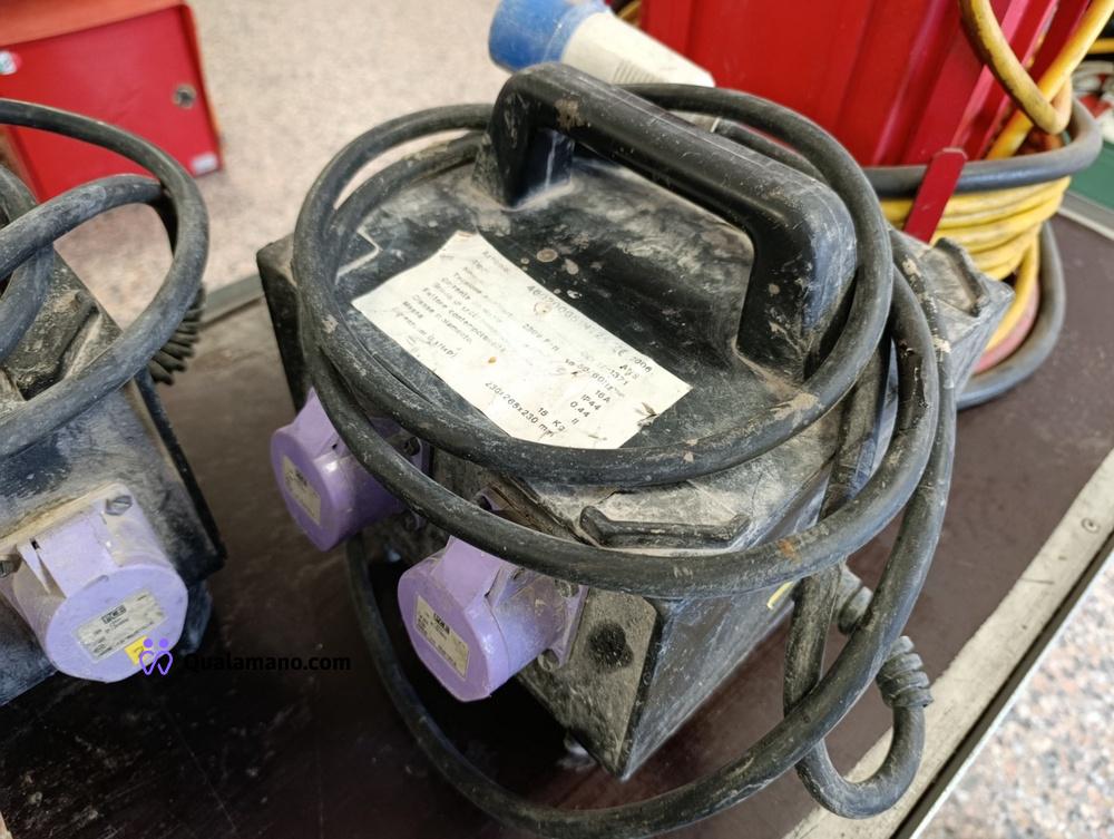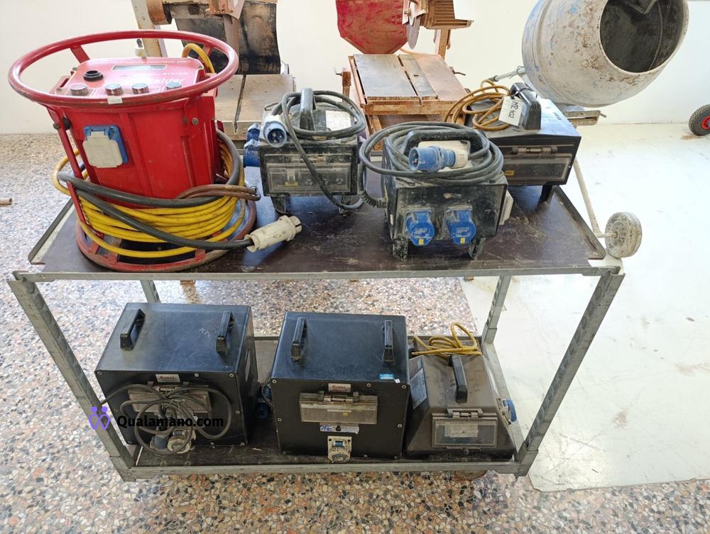Carrello metallico a 2 ripiani;N. 1 trasformatore di sicurezza WESTELETTRIC;N. 1 trasformatore monofase di sicurezza, potenza 900VA;N. 1 trasformatore di sicurezza;Elettrofusore MCA & Calder, SAM 3 (DUAL) P30120;N. 1 trasformatore GIFAS Italia, articolo 122179-35V15051/SPS, potenza nominale 1500VAN. 1 trasformatore GIMAX S.r.l., articolo H1A11005T11AS tipo ASC,...
