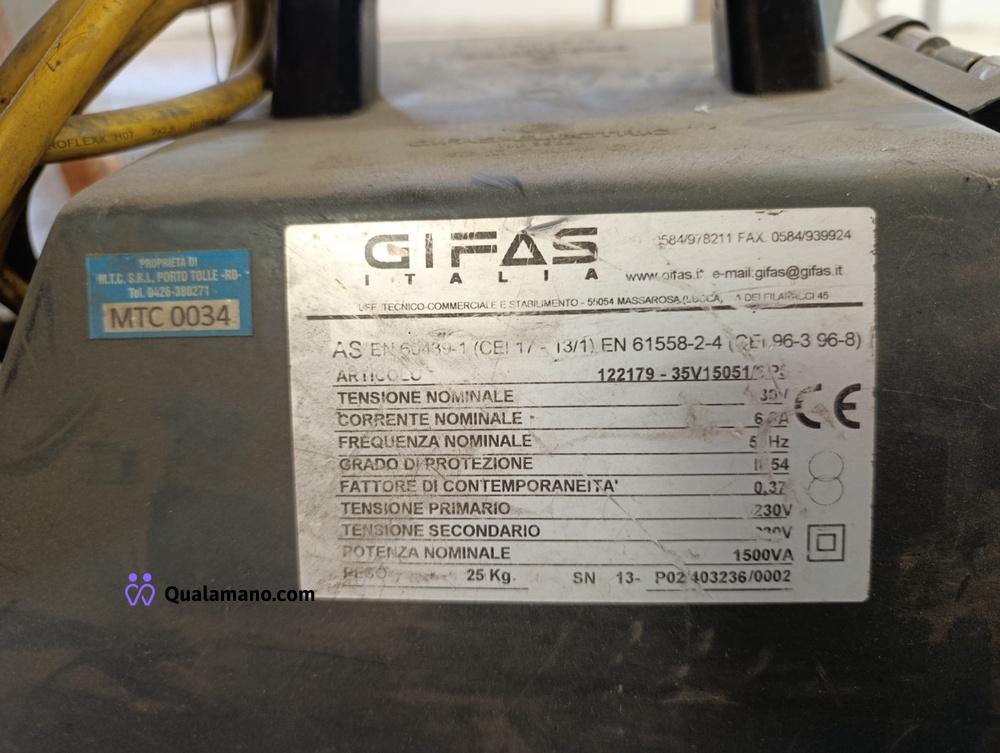 N. 1 trasformatore GIFAS Italia, articolo 122179-35V15051/SPS, potenza nominale 1500VA