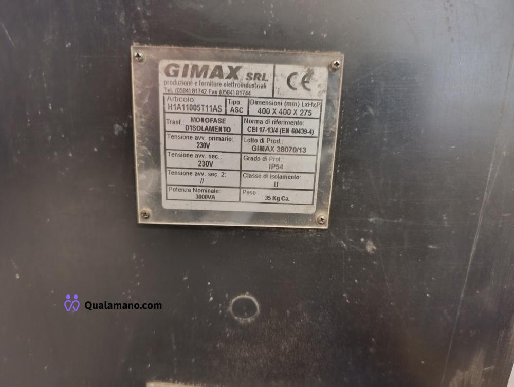 N. 1 trasformatore GIMAX S.r.l., articolo H1A11005T11AS tipo ASC, potenza nominale 3000VA;