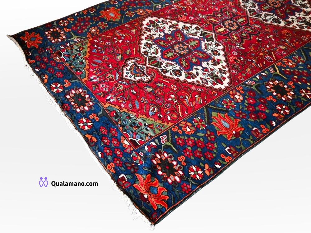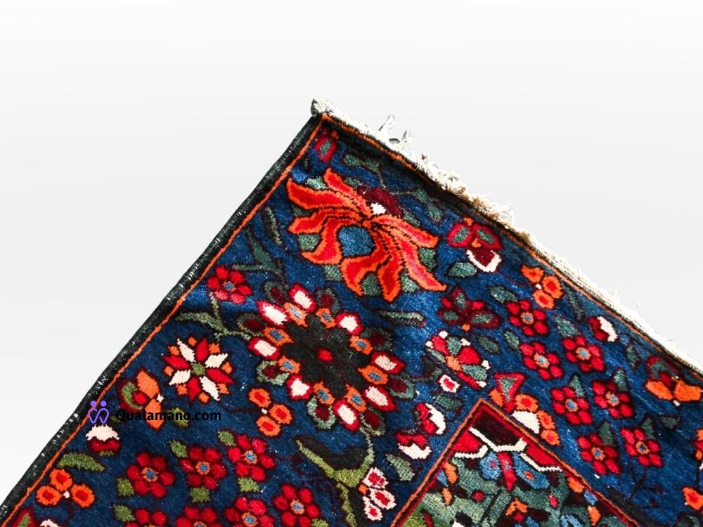 N. 1 Tappeto di tipo persiano “Malayer” anni 20, con decorazioni floreali multicolore e bordura blu con motivi vivaci. Dimensioni 193x327cm