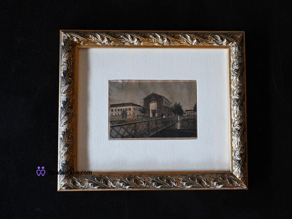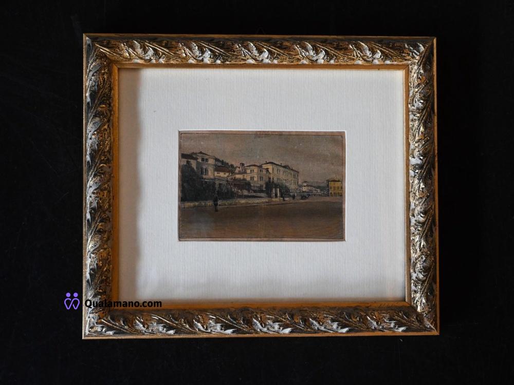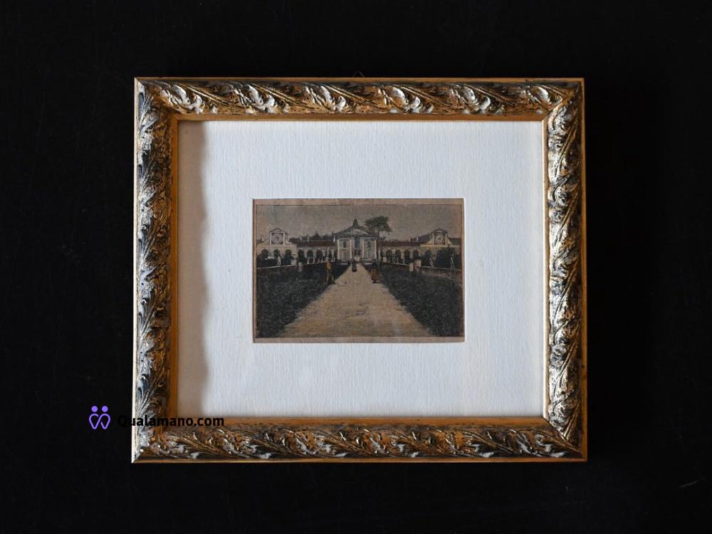 N. 3 quadri raffiguranti vedute architettoniche e paesaggi urbani, realizzate con tratto fine su carta ingiallita. Dimensioni con cornice 27x23 cm