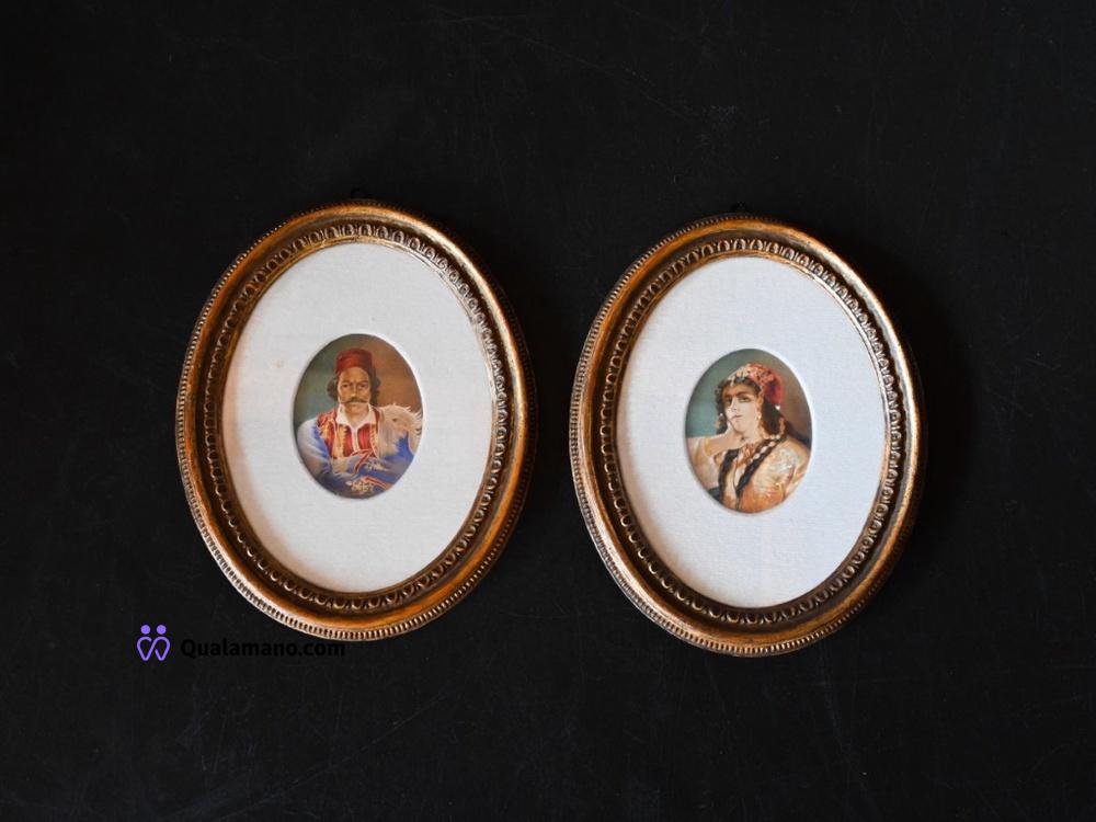 N. 2 ritratti ottocenteschi, incorniciati in elegante cornice ovale dorata, Diametro 30x36 cm