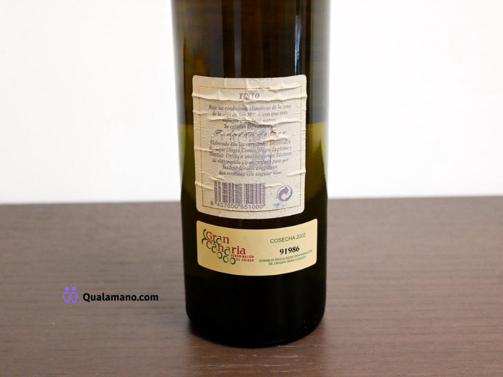 N. 1 Bottiglia di vino rosso “Frontón de Oro” – Gran Canaria D.O., annata 2002, 75cl, 12,5% vol.