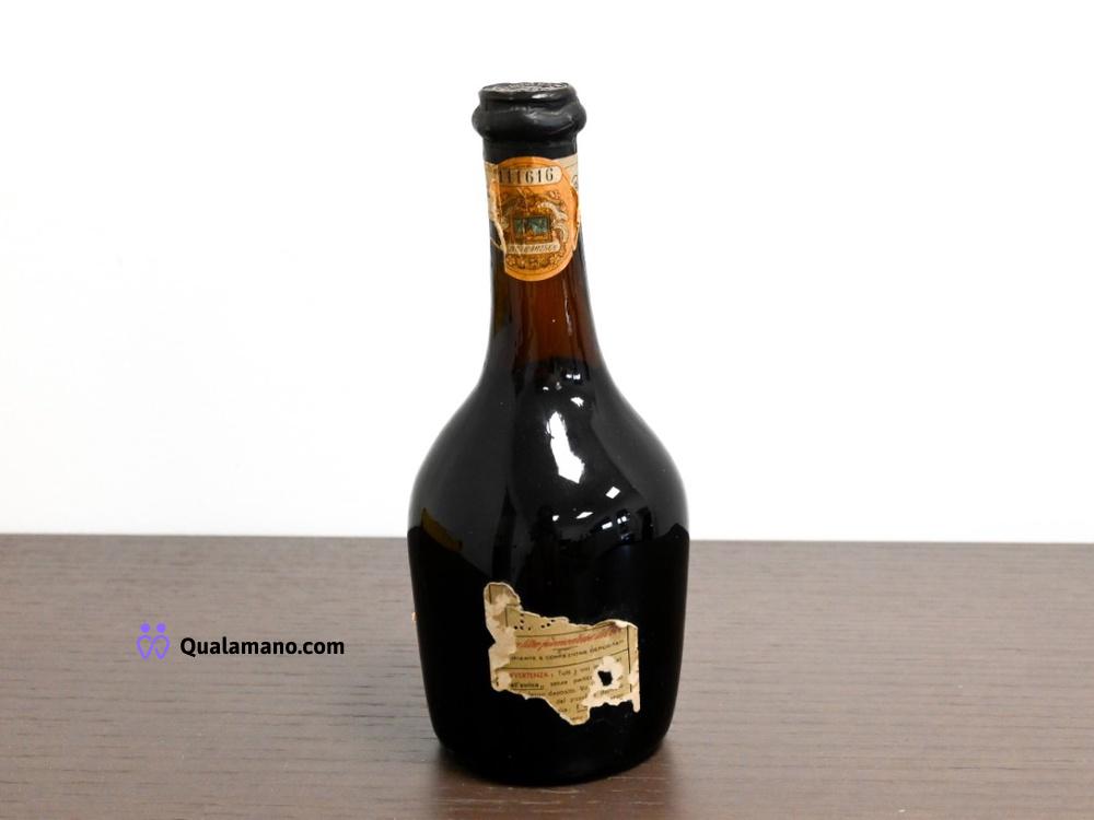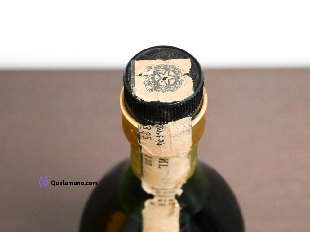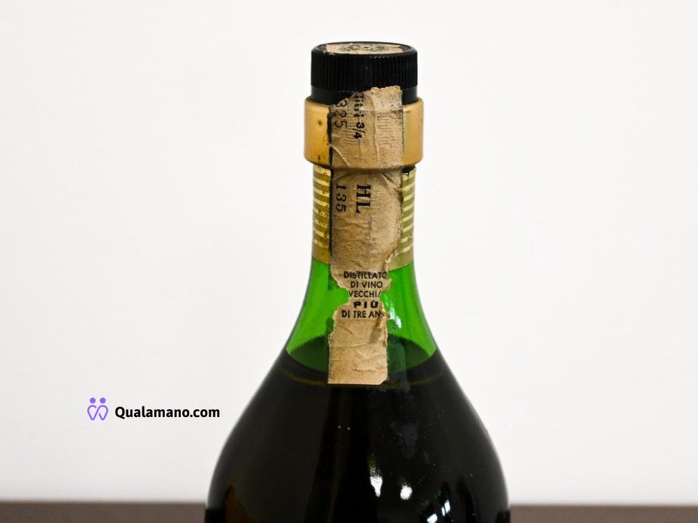 N. 1 Bottiglia di distillato di vino. Sigillo fiscale con dicitura “Distillato di vino vecchio di oltre 3 anni”.