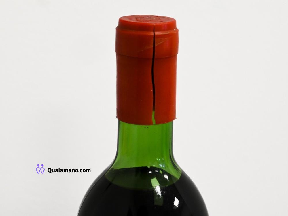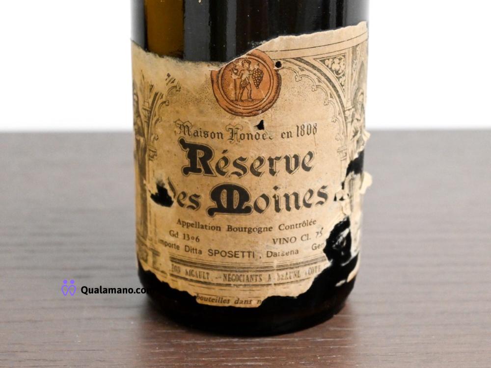 N.1 Bottiglia di vino "Réserve des Moines", annata 1965. Capsula rossa in ceralacca, bottiglia scura con rilievo decorativo sul vetro. 75cl, vol. 13,6%