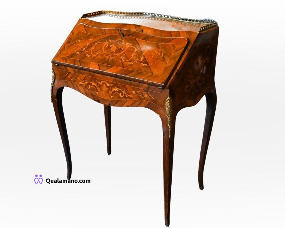 N. 1 Scrittoio a ribalta intarsiato, in legno, con raffinati motivi floreali. Dimensioni 100x75x43 cm