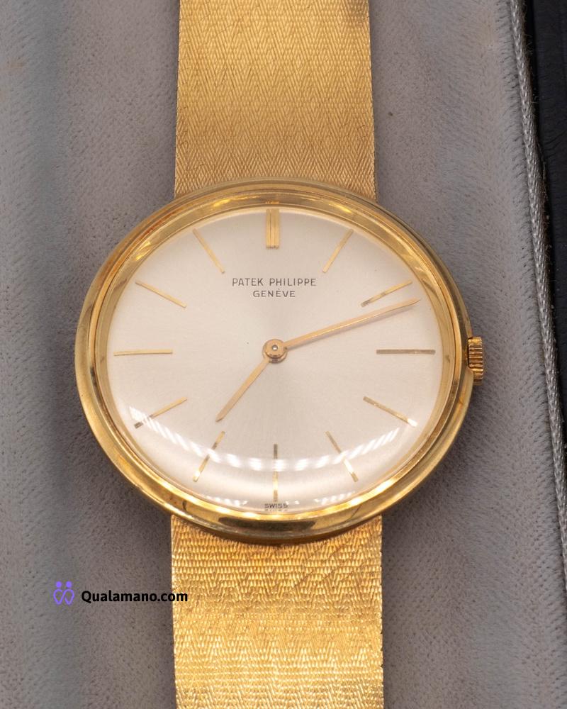 Orologio Patek Philippe Genève modello Calatrava – bracciale e cassa in oro giallo 750 – quadrante 36mm – completo di custodia originale Patek – peso complessivo di meccanismo gr.86 ca.