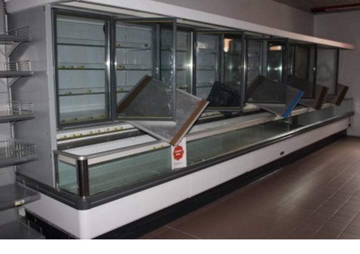 N.2 murali refrigeranti multi ripiano marca ARNEG con tenda motorizzata da collegare a centrale frigorifera (non compresa), dimensioni 380 x 110 x h.230;