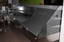 Vetrina refrigerata per salumi e formaggi marca ARNEG da collegare a centrale frigorifera (non compresa), completa di mensole porta bilancia e taglieri, dimensioni 380 x 110 x h.127;