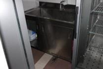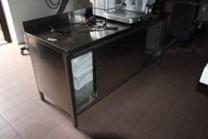 Lavello armadiato con 2 porte scorrevoli in acciaio inox con alzatina, completo di rubinetto, dimensioni 200 x 80 x h. 85;