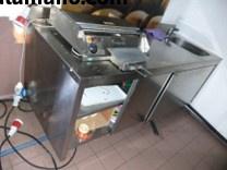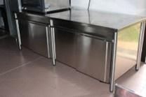 Tavolo armadiato con 4 porte scorrevoli in acciaio inox, dimensioni 250 x 90 x h. 90;