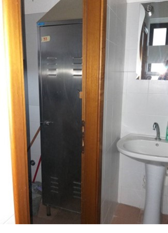 Armadio porta scope in acciaio inox a n.1 anta a battente tetto inclinato, dimensioni 50 x 50 x h. 180 cm;