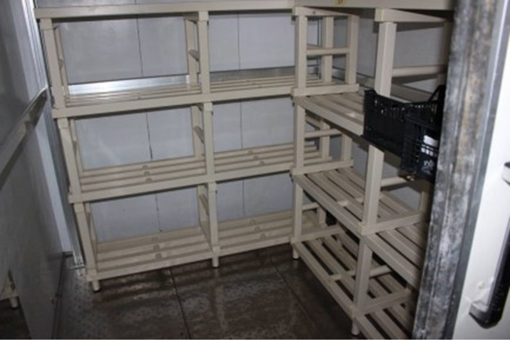 Scaffale in plastica per cella frigorifera, dimensioni 140 x 40 x h 150;