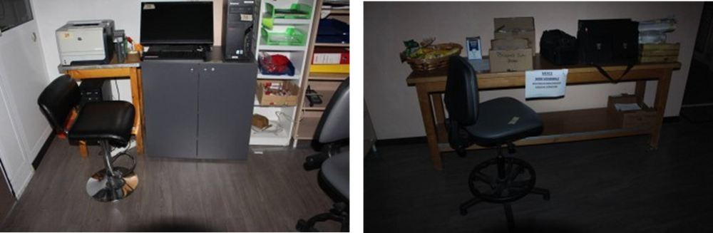 N.3 sgabelli cassa regolabili in eco-pelle grigia;