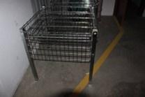 N.2 ceste bancarella espositiva rigida in filo metallico cromato con ripiano mobile, dimensioni 800 x 800 x 800;