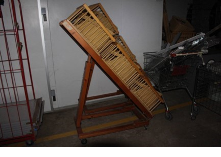 N.3 carrelli espositore prodotti da forno in legno, a inclinazione regolabile, completo di ceste, dimensioni 160 x 50 x h 150;