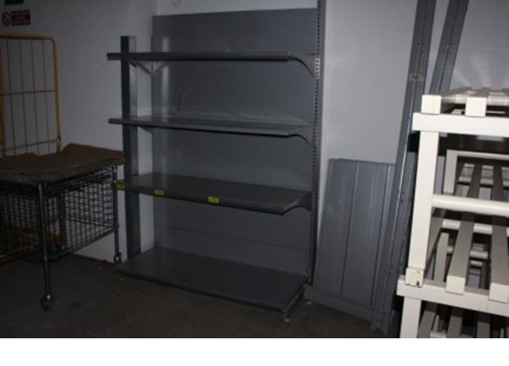 N.4 scaffalature metalliche modulari – murale - con mensole regolabili in altezza, verniciatura grigia antigraffio, dimensioni ingombro 1000 x 600 x h 2270, dimensioni mensole 1000 x 500;