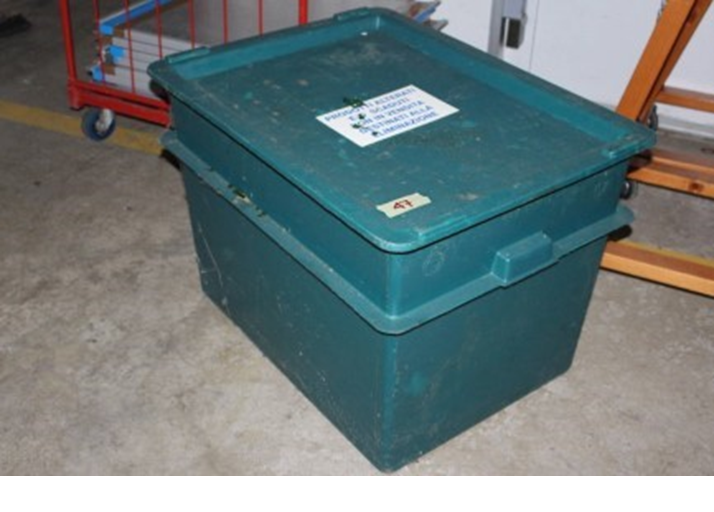 Cassetta in plastica verde, dimensioni 60 x 80 x h 50;