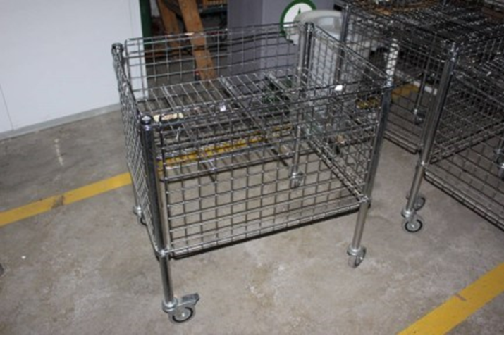N.4 ceste bancarella espositiva in filo metallico cromato - pieghevole - con ripiano mobile dotate di ruote, dimensioni 80 x 60 x 88;