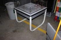 Banchetto espositore con struttura metallica, dimensioni 72 x 72 x h 85;