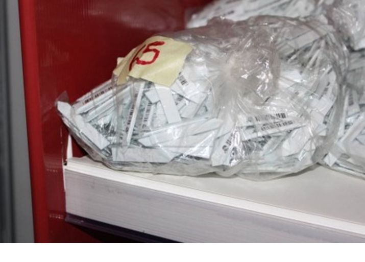 Varie etichette mini ultrastrip antitaccheggio adesive in sacchetti;