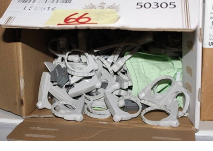 Vari collari antitaccheggio protezione bottiglie in scatole;