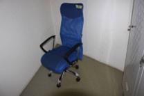 Sedia girevole da ufficio con ruote pivottanti con schienale alto e braccioli regolabili in tessuto blu;