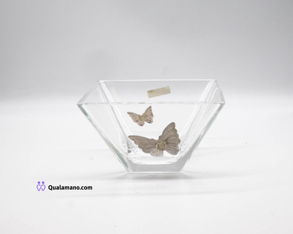 N.1 pendola con inserti argentati - n.1 cornice in argento - n.1 ciotolina in metallo zampe di leone - n.1 ciotola in vetro con inserti argentati