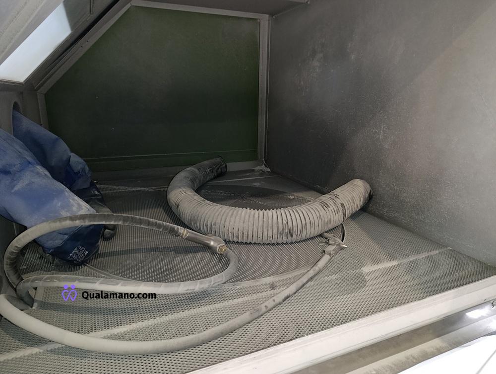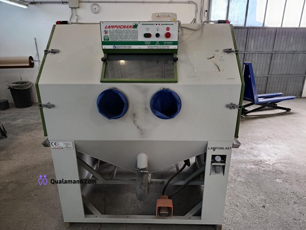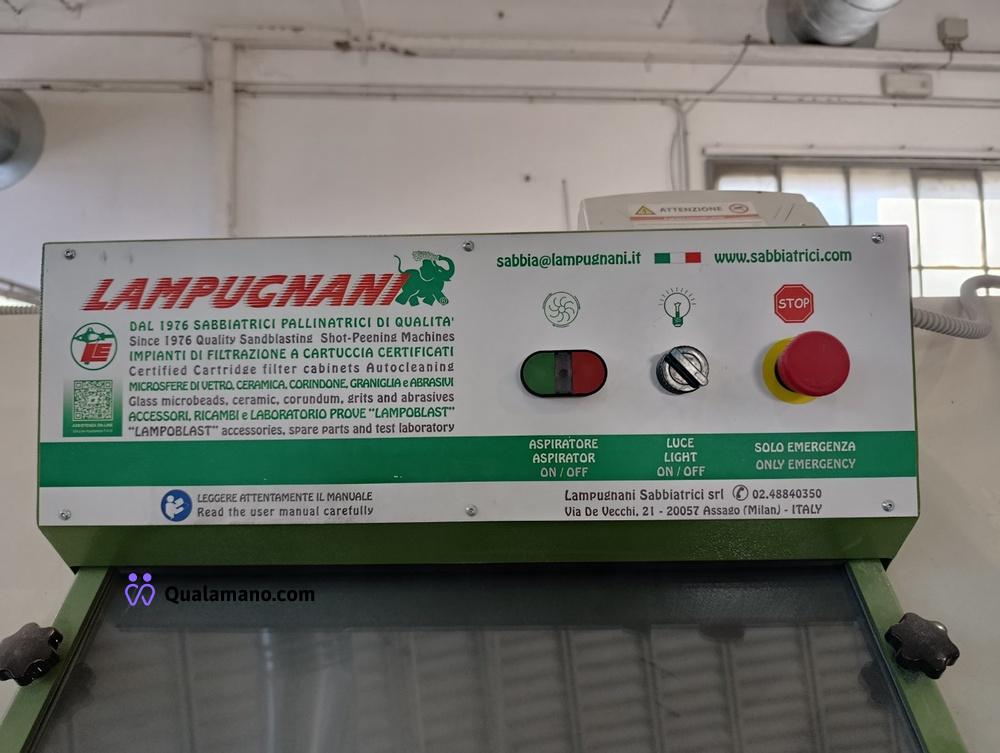 Sabbiatrice marca LAMPUGNANI SABBIATRICI S.r.l., modello LC/3TR (LAMBOBLAST), anno di costruzione 2023, matr. 10288 - dimensione postazione da lavoro mm 1500x1200x900 h, completa di filtro a cartuccia e armadio aspirante modello SE 1, pressione max 0,5Mpa (5bar), matricola 10289, anno 2023 (all’interno piatto rotante).