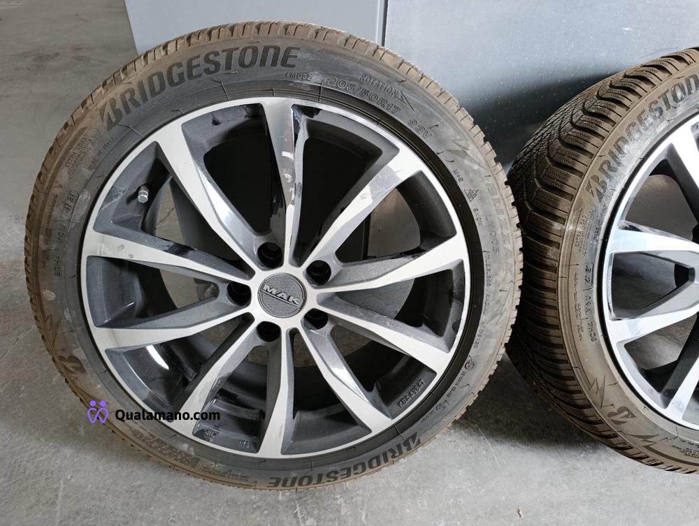 N. 4 cerchi in lega per autoveicolo, marca MAK “17;N. 4 pneumatici BRIDGESTONE, usati, 205/50R17 93V, M+S Snow.