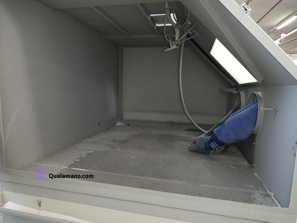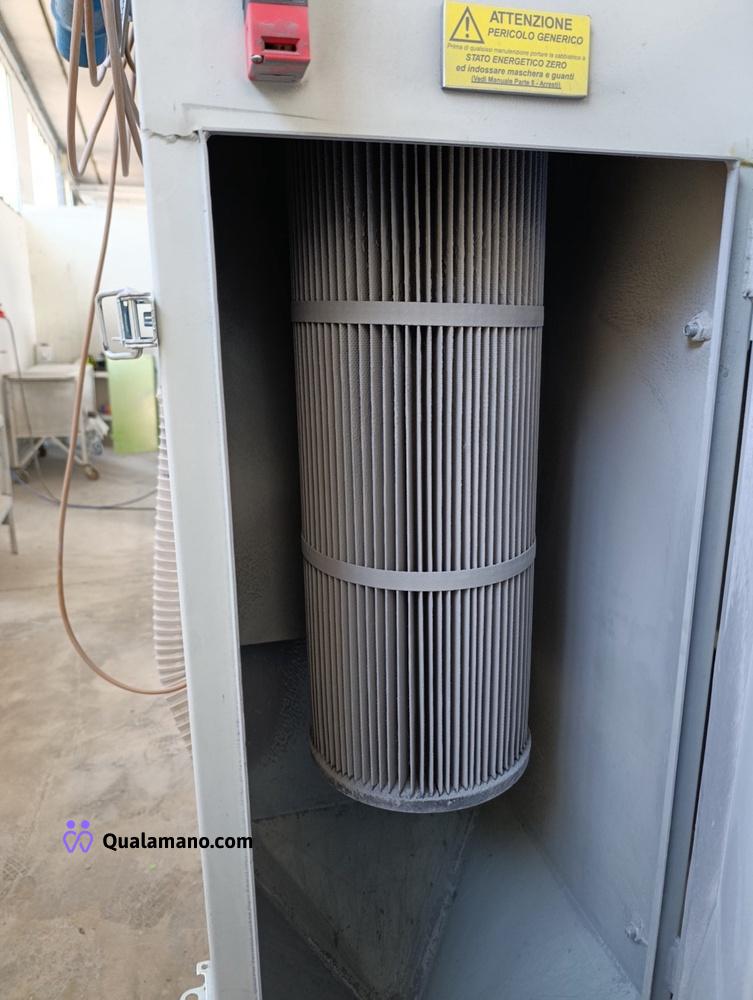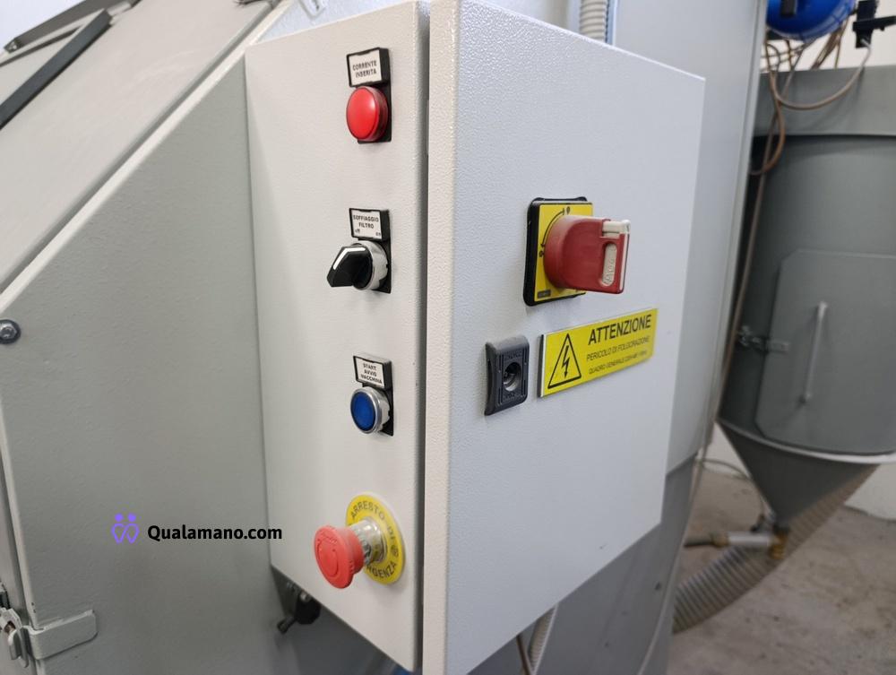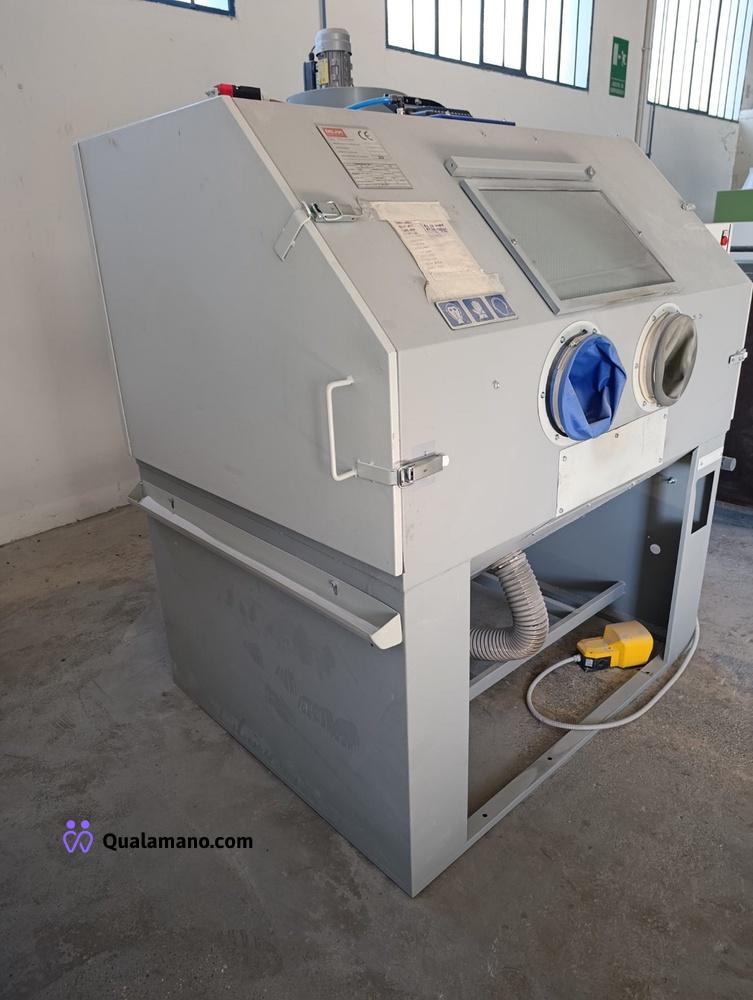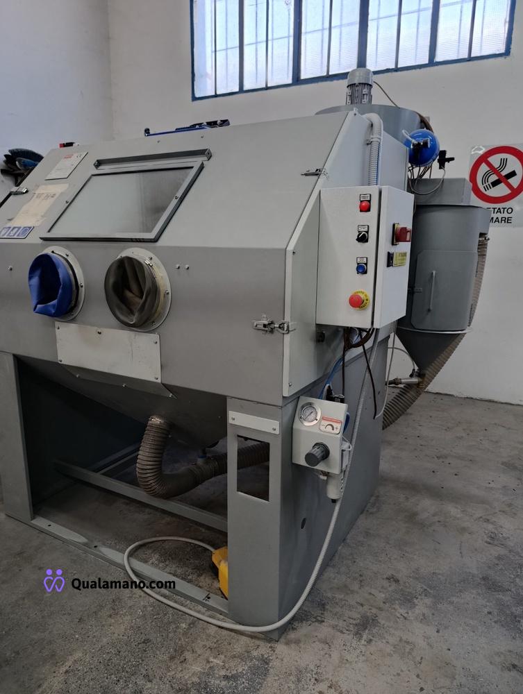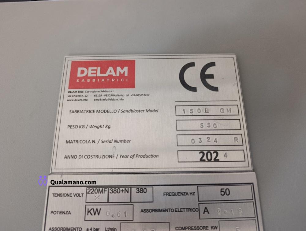 Sabbiatrice marca DELAM S.r.l.s., modello 150L GM, peso 550 kg, matricola/serial n. 0324 R, anno di costruzione 2024, dimensione postazione da lavoro mm 1500x1100x800 h, dimensioni totali di ingombro mm 1960x1850x2250 h., tensione Volt 220MF, frequenza 50 HZ, lavoro in depressione, completa di filtro a cartuccia posteriore;