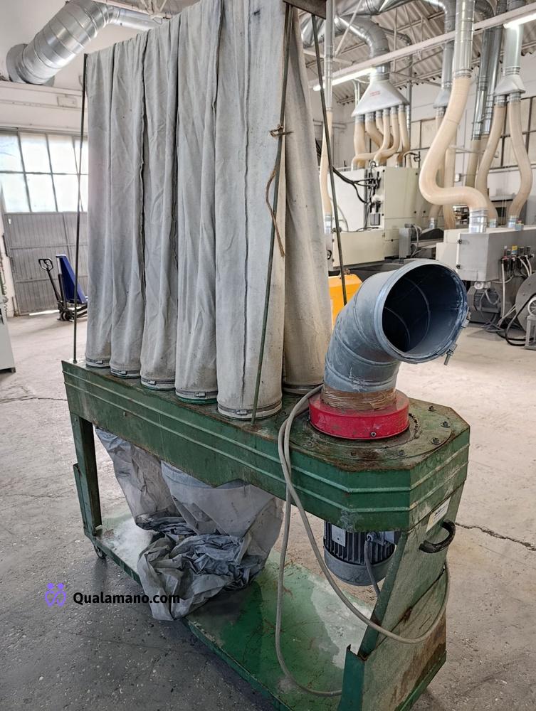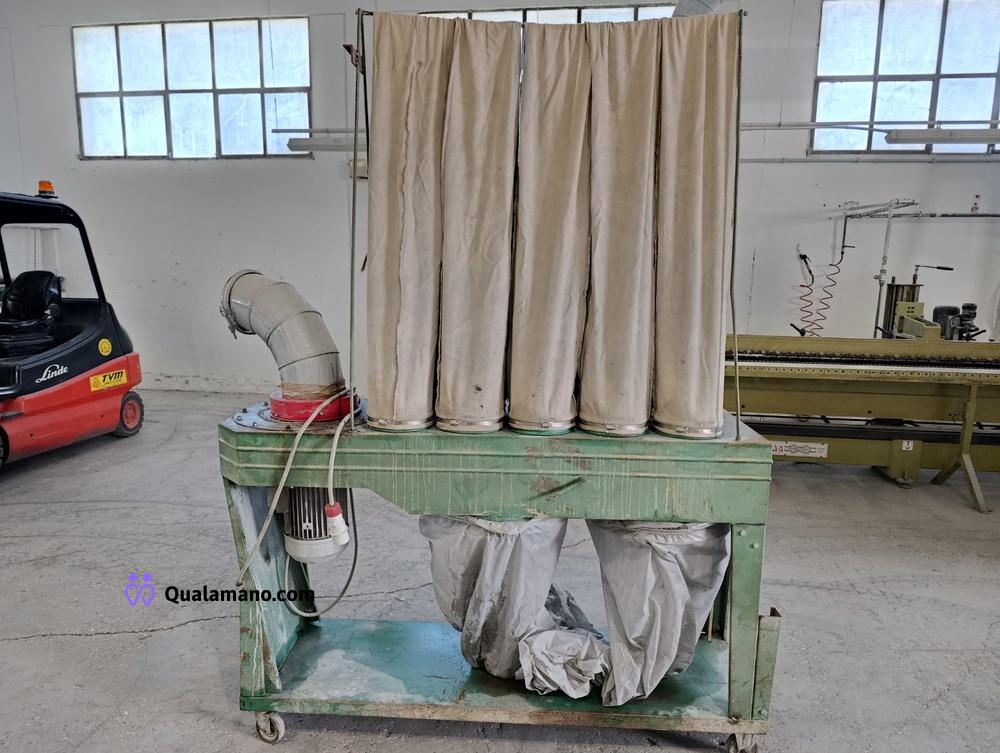 Aspiratore per falegnameria con filtro aspirante a 5 calze, struttura metallica su ruote, dimensioni di circa cm. 170x53x230 h.