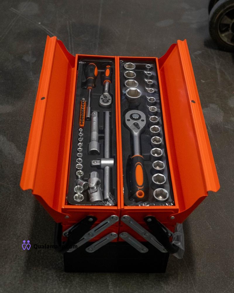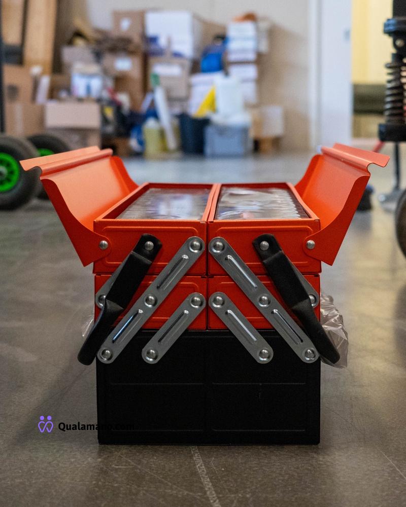 Cassetta in acciaio completa di attrezzi – apertura a soffietto - 5 scomparti – 85 pezzi