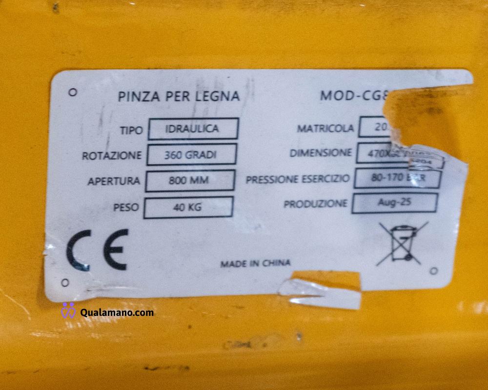 Pinza rotante idraulica per legna, attacco universale - apertura 800mm per escavatori da 700 a 2700 kg – peso 40 Kg – pressione d’esercizio 80-170bar