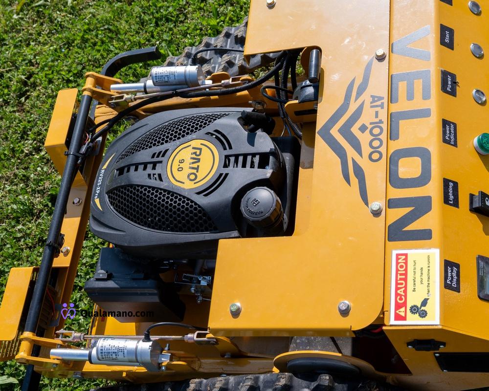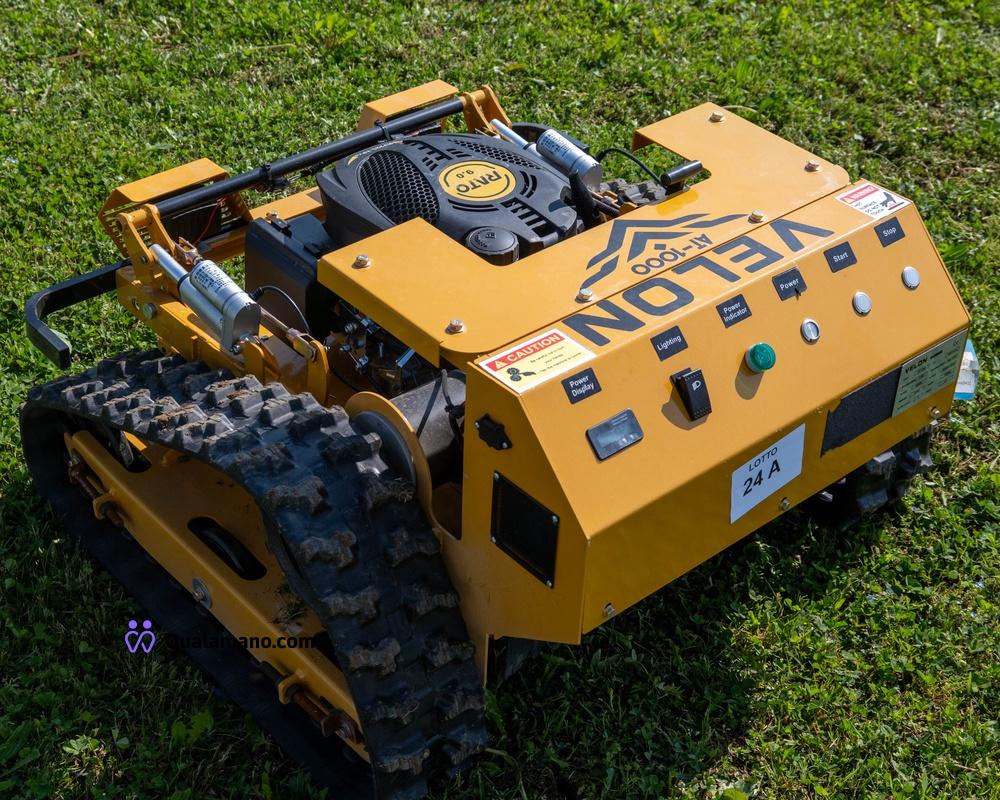 Falciatrice radiocomandata modello Velon AT-1000 - doppio cingolo trainante - motore gasoline - accensione elettronica - radiocomando digitale - altezza lama elettro regolabile – engine power 7,5 Hp – velocità 6Km/h – peso 130Kg – engine speed 3600 RPM – 12 Volt – numero di serie 202512020