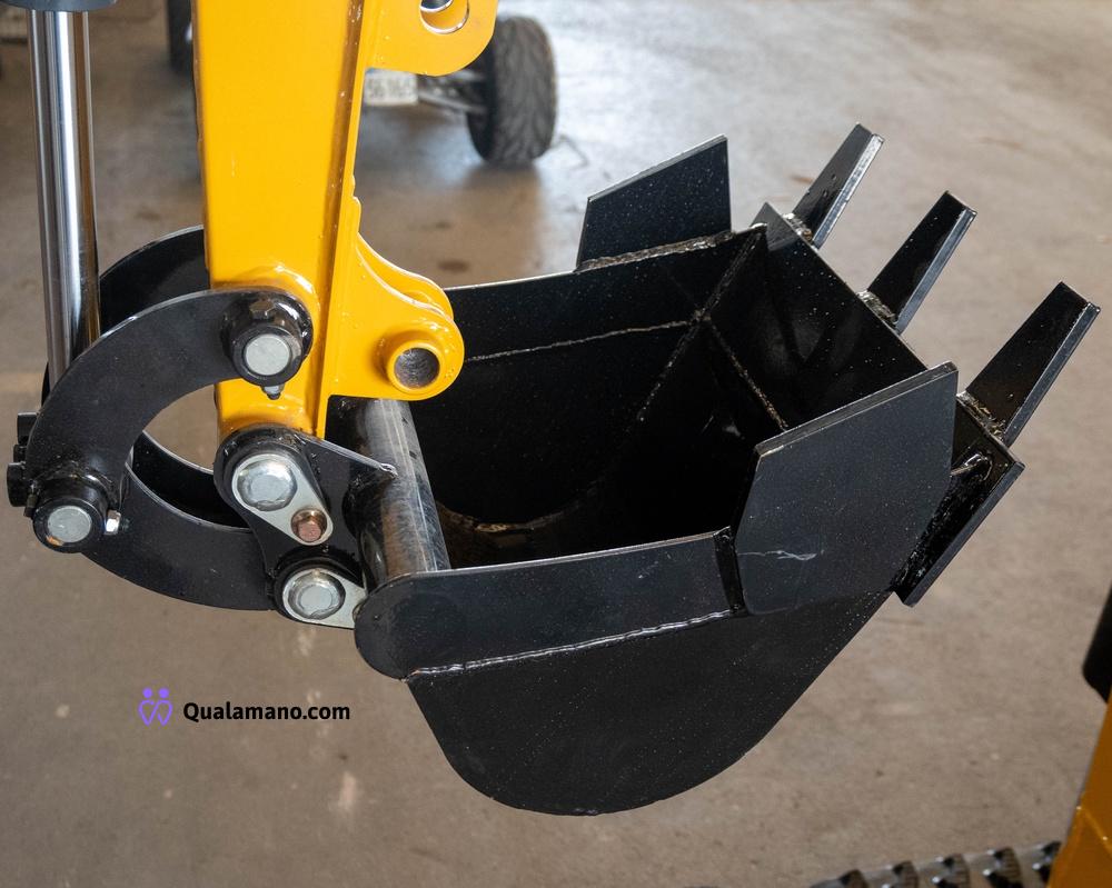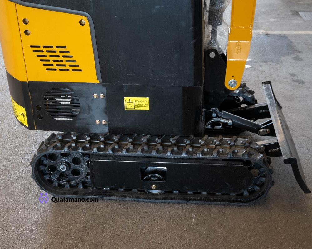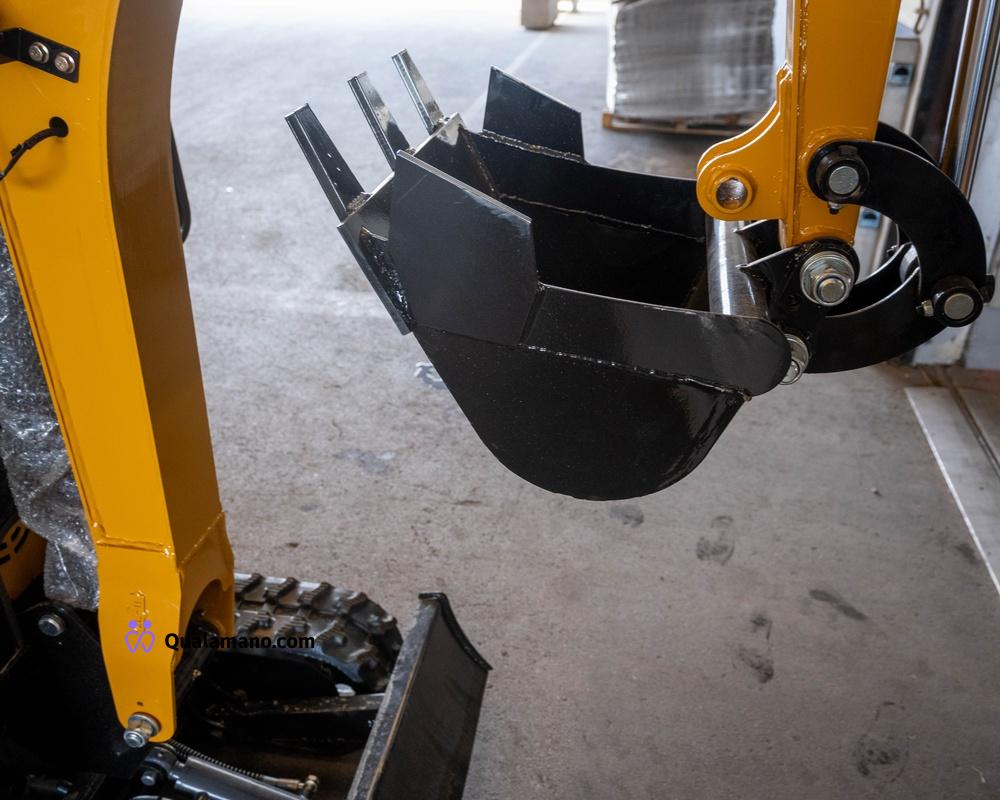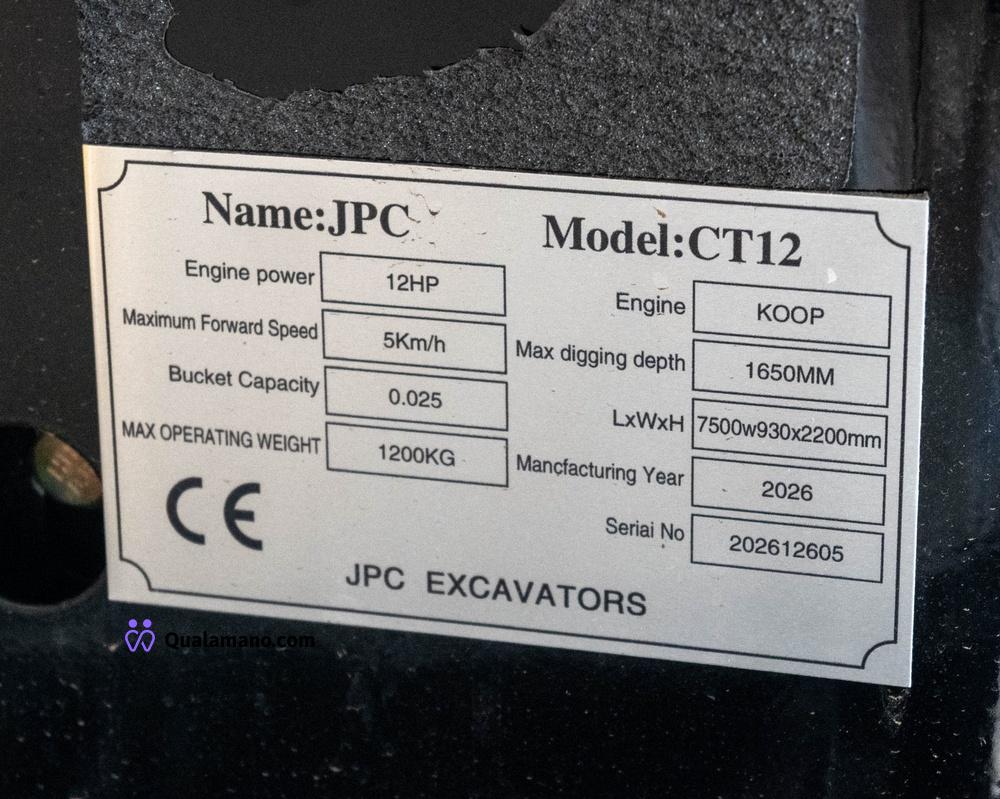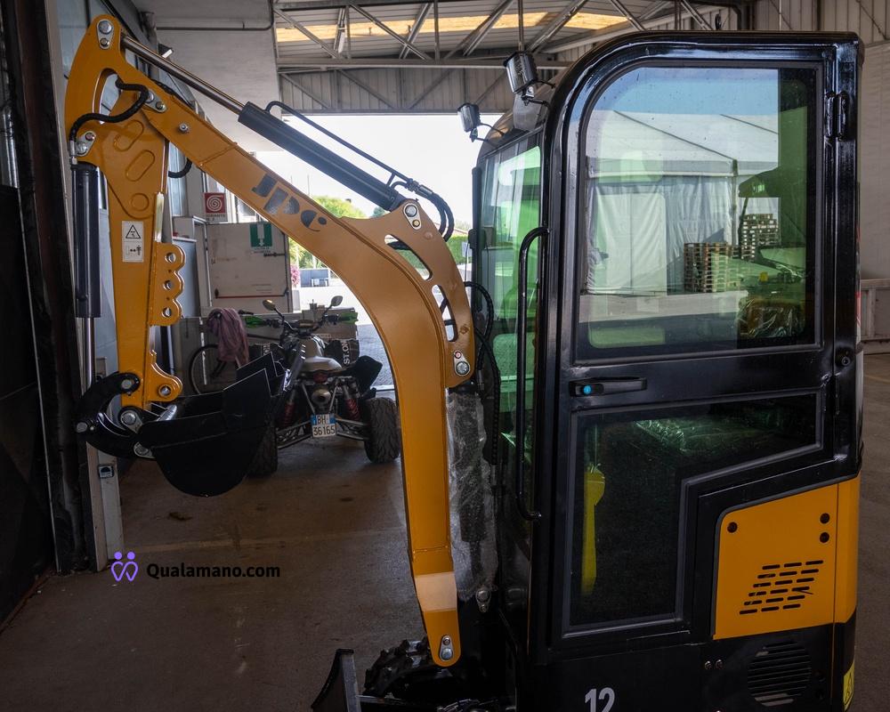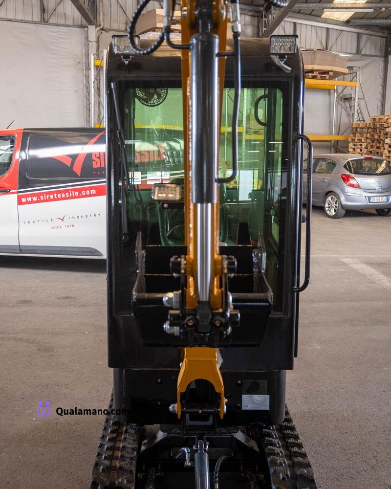 Miniescavatore cingolato con cabina in vetro - completo di benna da scavo - accensione elettronica - cingoli in gomma - ralla rotazione continua 360 gradi - attacco e comando per martellone - mai usato 0 ore – engine power 12HP – velocità massima 5 km/h – max. operating weight 1200kg – max digging deph 1650MM – numero di serie 202612605