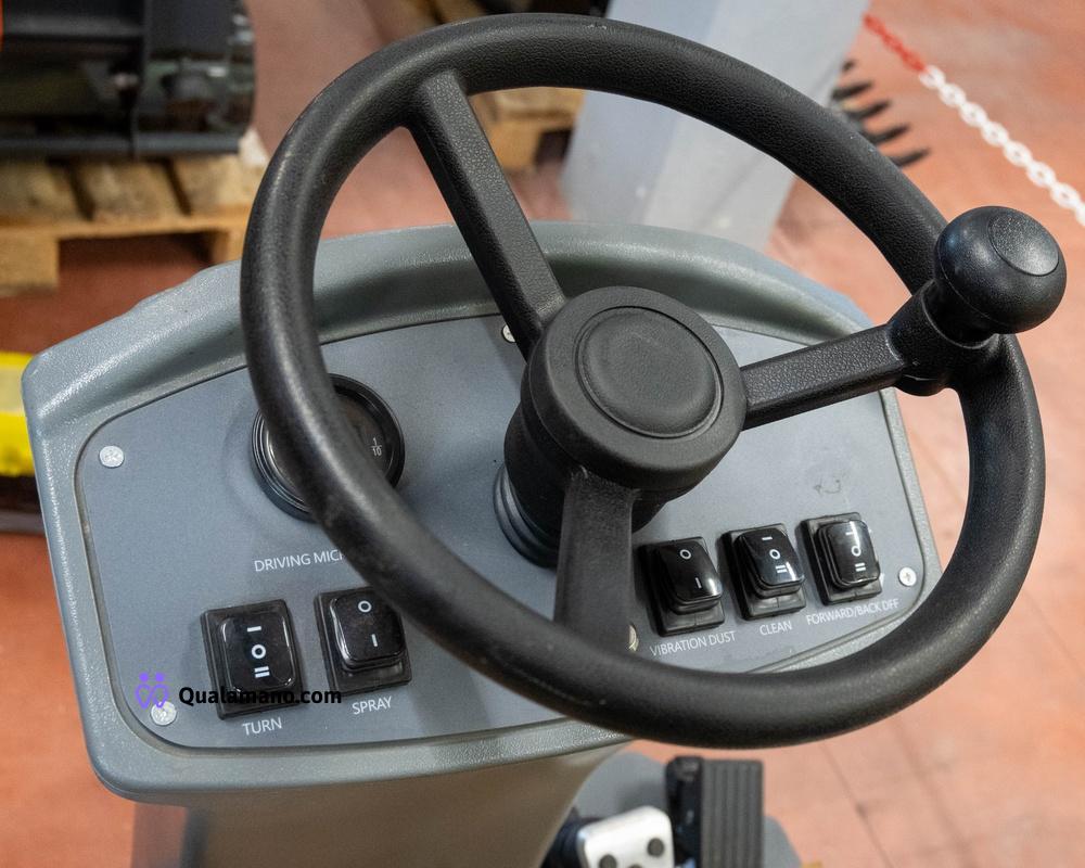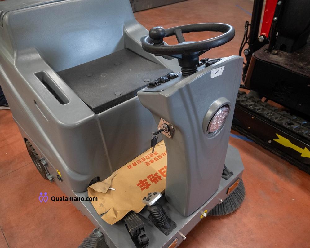 Spazzatrice elettrica a batteria - sistema di guida confort - abbattimento polvere automatico - nebulizzatore frontale - pacco batterie 48 volt - dotata di caricabatterie elettronico carica rapida– engine 48 volt – maximum speed 0-12 Km/h – peso 280 kg – serial number 20250147609 – 6 ore di autonomia